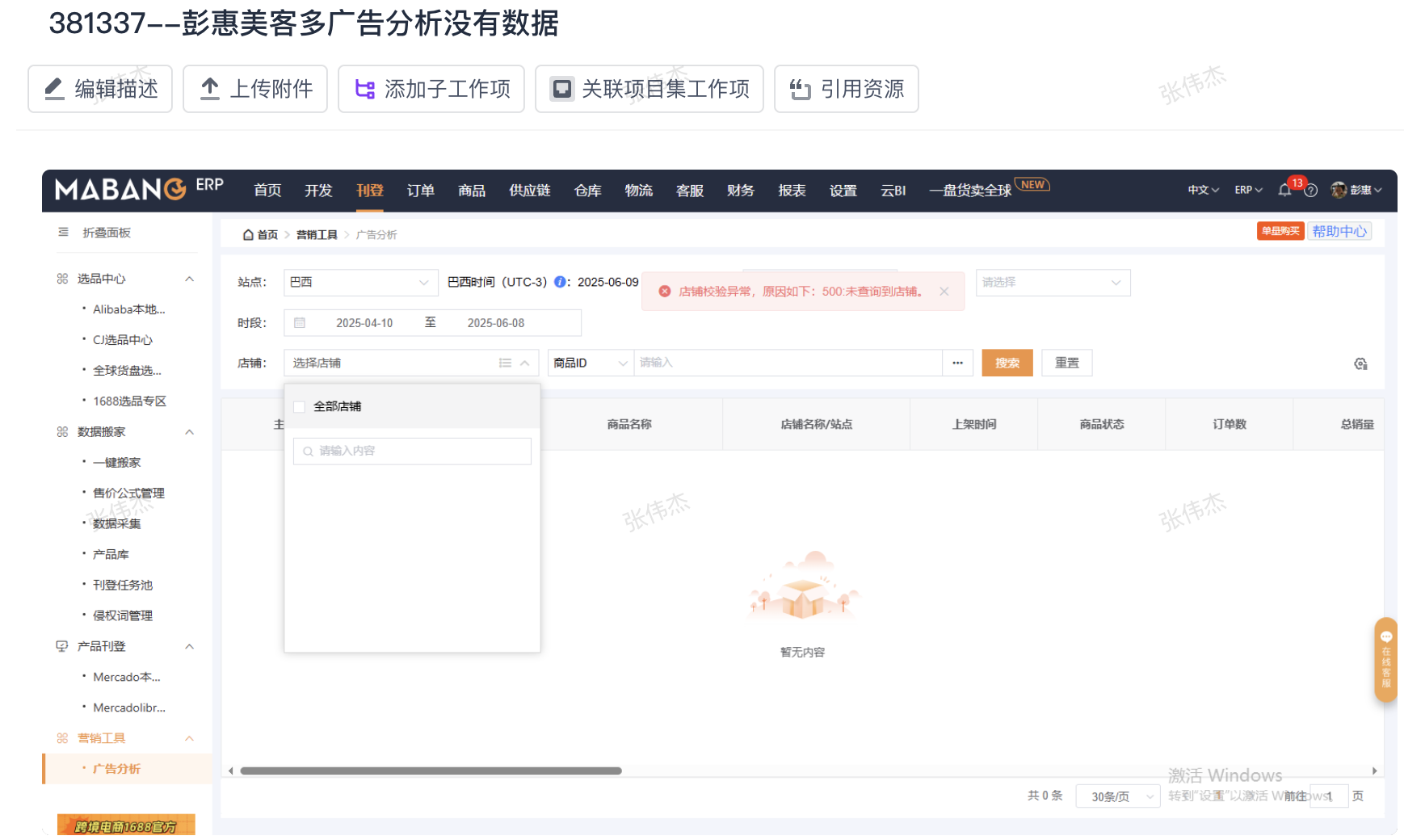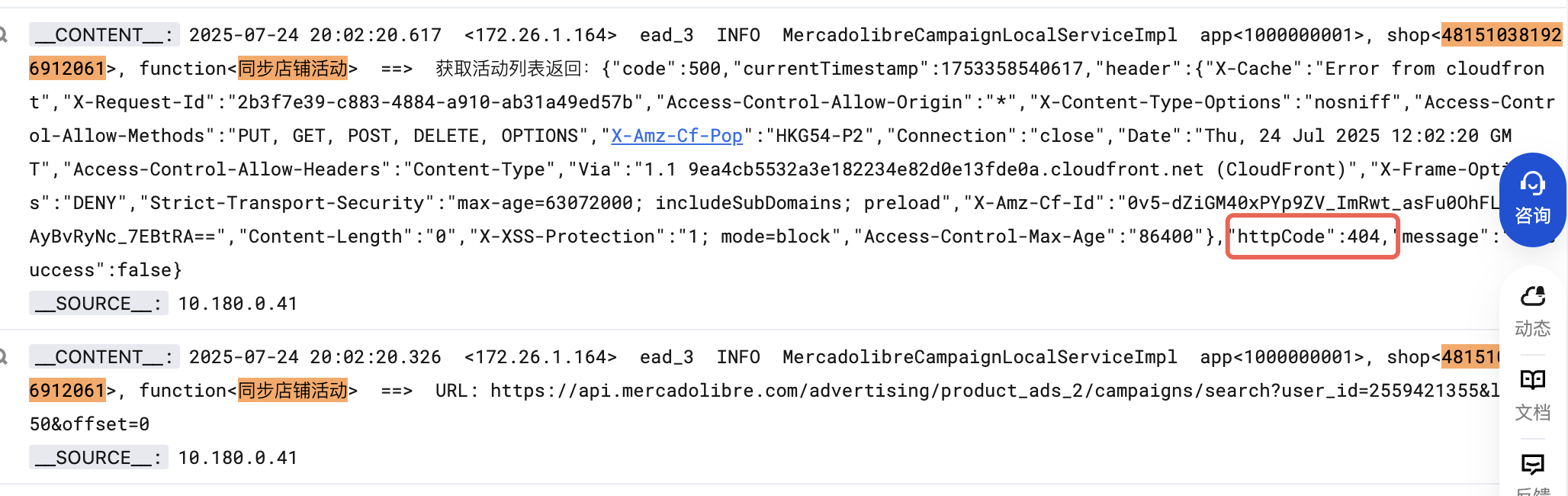 ### ozon 广告管理拉取数据缺失 工单现象:  原因:由于接口文档返回csv 文件内容字段增加导致,目前已经调整获取字段的key 值。 ### 美客多广告 工单现象:  原因:疑似该接口已经下架,目前访问该接口报 404
