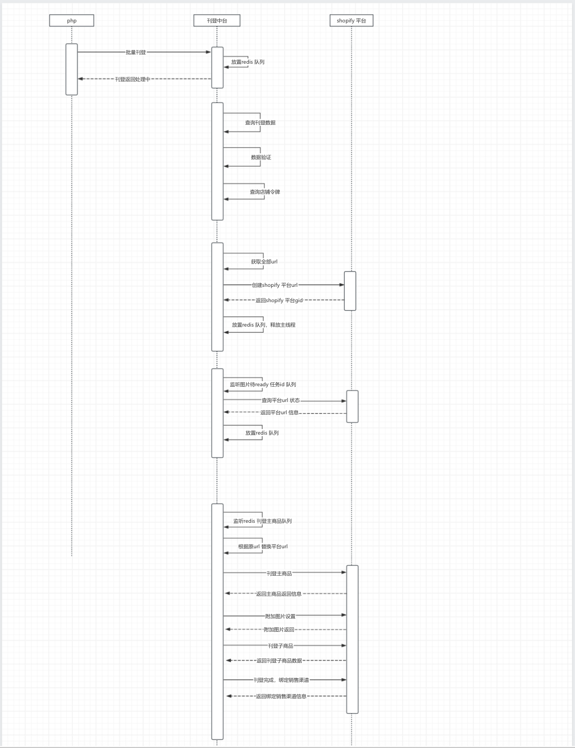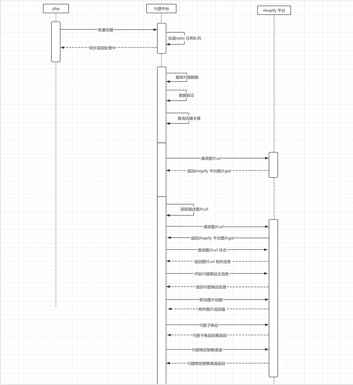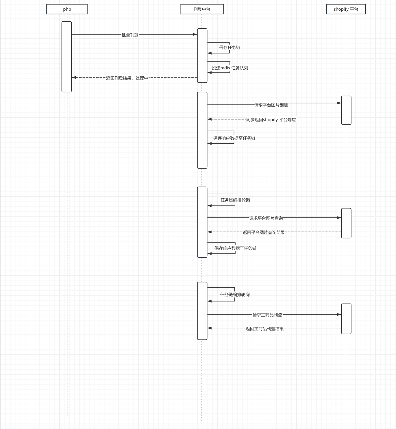 ## 背景 1.由于shopify刊登过程中需要上传图片,包含描述中图片&附件图片,而图片上传平台又是异步,需要等待图片ready 才能执行后续接口流程。而目前系统设计该刊登任务属于串行化执行长任务接口,图片状态在非ready 状态下,主线程一直处理等待状态,影响批量刊登效率。 ### shopify 现状刊登时序  ### shopify 优化后刊登时序  通过添加两个redis 节点的任务队列,监听图片待ready任务队列&监听图片就绪开始刊登主商品任务队列 ==redis 本身具备原子性特点,能够避免多pod 情况下被重复拉取消费特点== 改进点:通过新增监听图片待ready 任务队列 & 监听图片就绪开始刊登主商品任务队列释放主线程,不用阻塞等待,接收新刊登任务,提高刊登吞吐量。 缺点: - 无法能够做到长任务中部分节点失败,重试刊登不能做到幂等返回,还需要从头执行,影响效率。 - 长任务工作流节点分散,只能阅读代码,才能了解整个刊登流程分为多少个子节点,不能直观感受任务具体进行到哪个工作节点从而导致的失败,处理工单有一定的延迟性。 ### 长任务工作流程抽象方案 目标: - **一个任务是多个阶段组成的,后续阶段必须依赖前置阶段的“成功完成结果”才能执行,任务可能同步执行,也可能异步回调** - **要构建一个通用的长任务编排模型,既能处理同步响应,又能支持异步回调,同时保证前后任务间有依赖关系(依赖前置任务成功后再走下一步)**  ```sql public class SubTask { private int order; // 步骤顺序 private String name; // 比如 "uploadImage", "waitImageReady", "callPublishAPI" private SubTaskStatus status; // PENDING, RUNNING, SUCCESS, FAILED private boolean async; // 是否异步 private String result; // 执行结果或中间数据 } ```