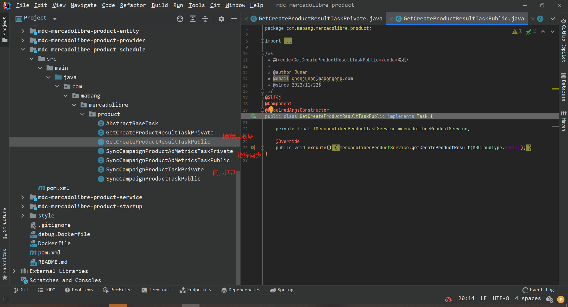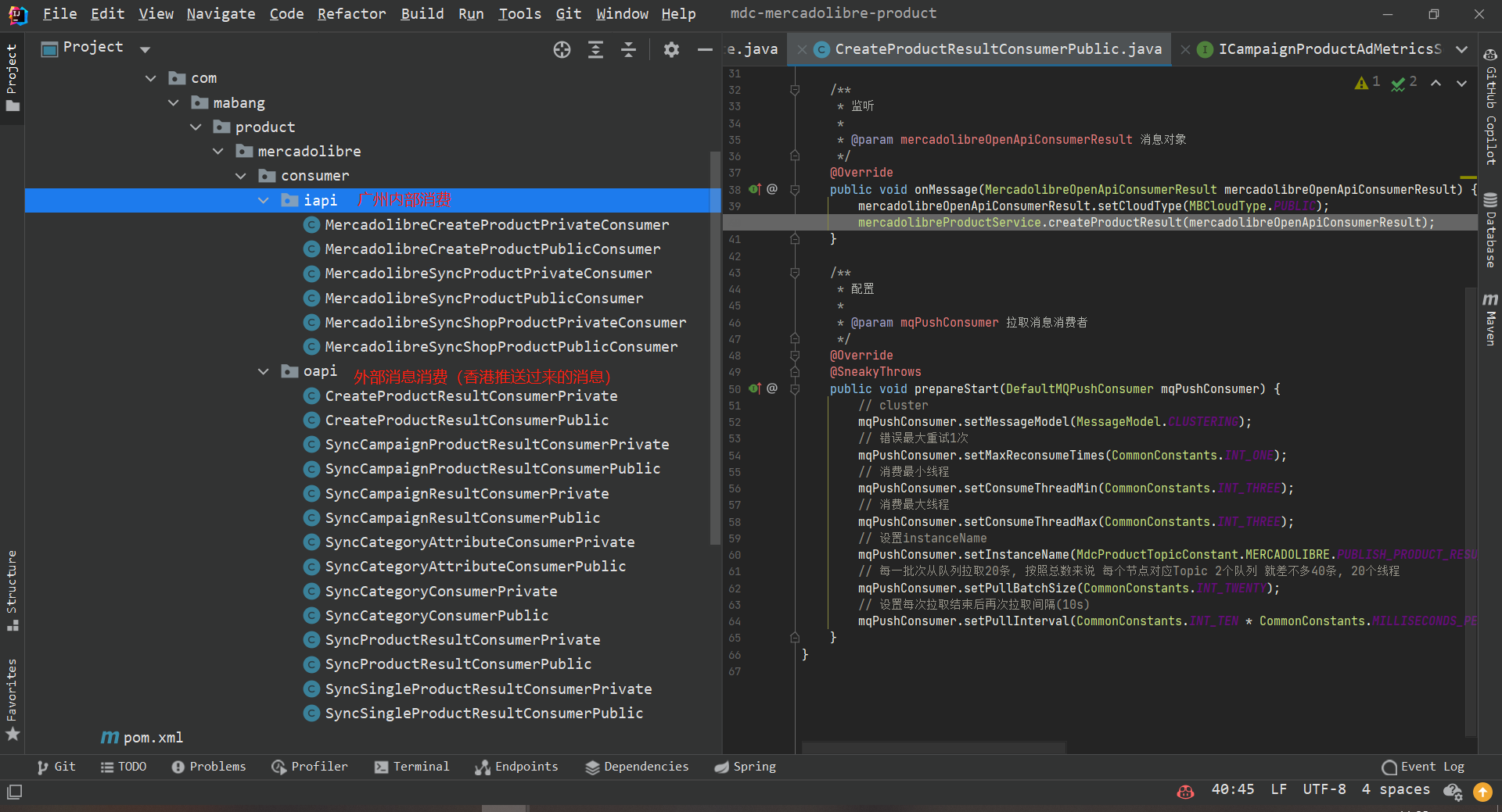 # # 官方文档地址 ``` // 本土刊登、广告 https://developers.mercadolibre.com/ ``` # # 负责的产品 李珣 # # 项目 `mdc-mercadolibre-product` `mps-mercadolibre-product` `mps-mercadolibre-meta` `mdc-open-api-information` `mdc-open-api-publish` `mdc-open-api-product` `mdc-iapi-product` # # 流程 美客多主要负责广告和本土刊登广州程序的处理逻辑。  1、广告 广告业务的广州程序直接对接的前端,接口在 `mdc-mercadolibre-product` 项目的 `MercadolibreCampaignController` 中,提供了以下五个接口: ``` 1)商品列表:分类查询商品列表,支持单个企业下的多个店铺同时查询 2) 获取支持站点:返回支持的站点 3) 获取店铺信息:获取当前企业的店铺 4) 同步店铺指标:目前只是我们自己内部使用,未开放给客户 5) 手动同步店铺商品 ``` 同步指标的接口目前是异步的,因此不能重复调用。用户我们内部给客户补拉数据使用的。又杨磊改进后,支持多企业多店铺拉取,内部会异步进行企业和店铺分组同步日期区间内的指标数据。 2、本土刊登 `mdc-mercadolibre-product` 项目中包含分类同步、分类属性同步、刊登、同步店铺商品、获取刊登结果等业务。 2.1 刊登 PHP 通过 `mdc-iapi-product` 项目中的公共创建商品接口提交任务ID给我们广州的程序,我们读取任务数据组装为中台接口的格式请求中台,拿到中台ID保存到刊登任务表。 2.2 同步店铺商品/同步单个商品 内部: 同步店铺商品:```MercadolibreSyncShopProductPublicConsumer``` 同步单个商品:```MercadolibreSyncProductPublicConsumer``` 外部(香港推送): 单个商品详情:```SyncProductResultConsumerPublic``` 单个商品详情(页面点击):```SyncSingleProductResultConsumerPublic``` 香港推送的店铺推送结果也在单个商品推送的队列中,只是通过actionType 字段做区分,如果值为shop_update,则是店铺同步结果的消息,其他则为商品详情消息  3、定时任务  3.1 刊登结果获取 用于处理长时间卡刊登中的任务,如果没有收到刊登结果的推送则主动向中台获取,但是只会处理24小时之内卡刊登中的。 3.2 指标数据同步 当天只会获取昨天的指标数据。 3.3 店铺活动同步 每天拉取店铺活动数据及其活动下商品数据。